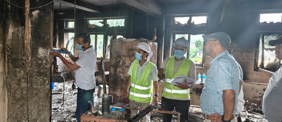 आन्दोलनबाट मन्त्रालयको भवनमा भएको क्षतिको प्रारम्भिक चरणको प्राविधिक परिक्षण हुदै